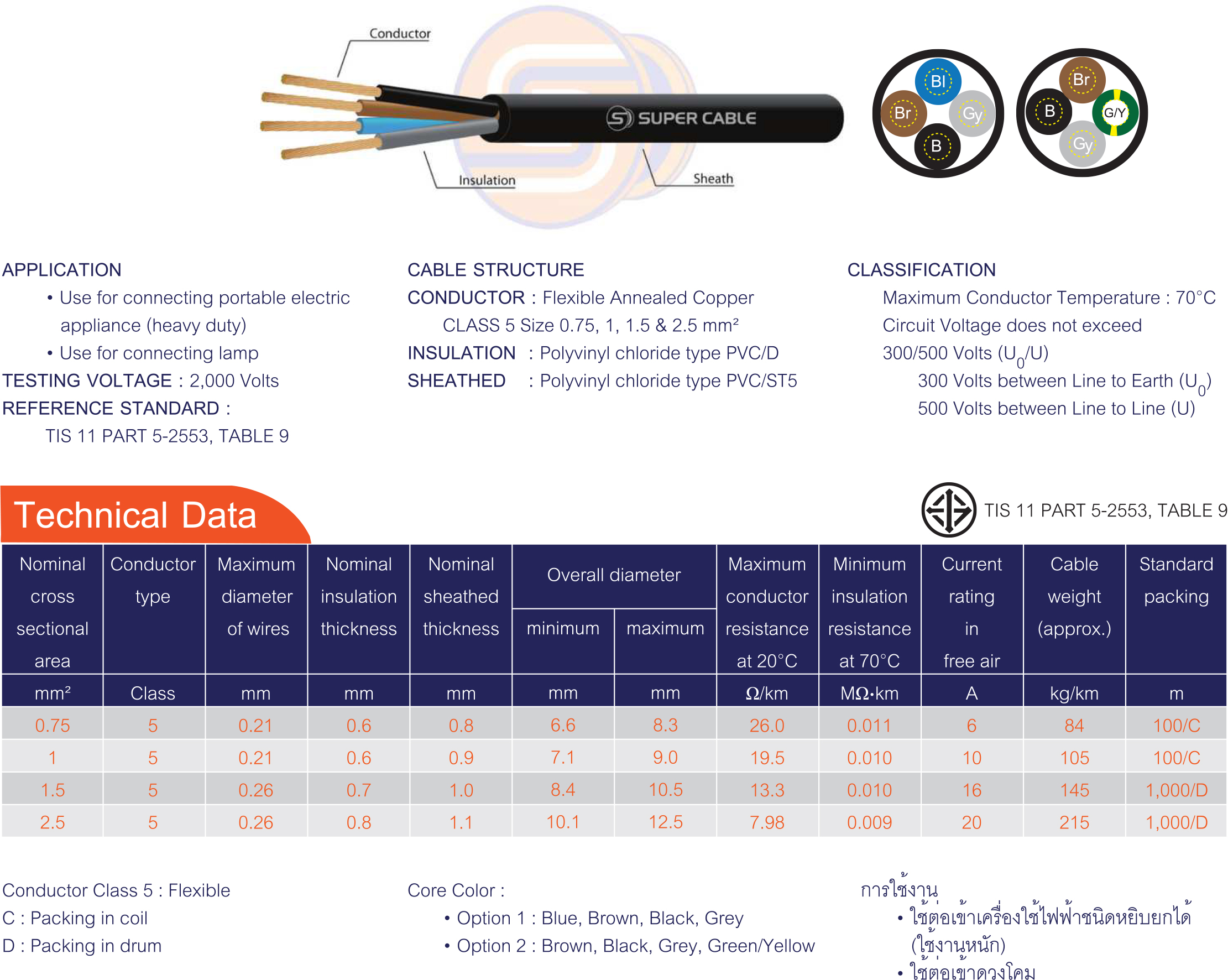 สายไฟชนิดตัวนำทองแดง/สายคอนโทรลและสายอ่อน | 60227 IEC 53, 4 CORES