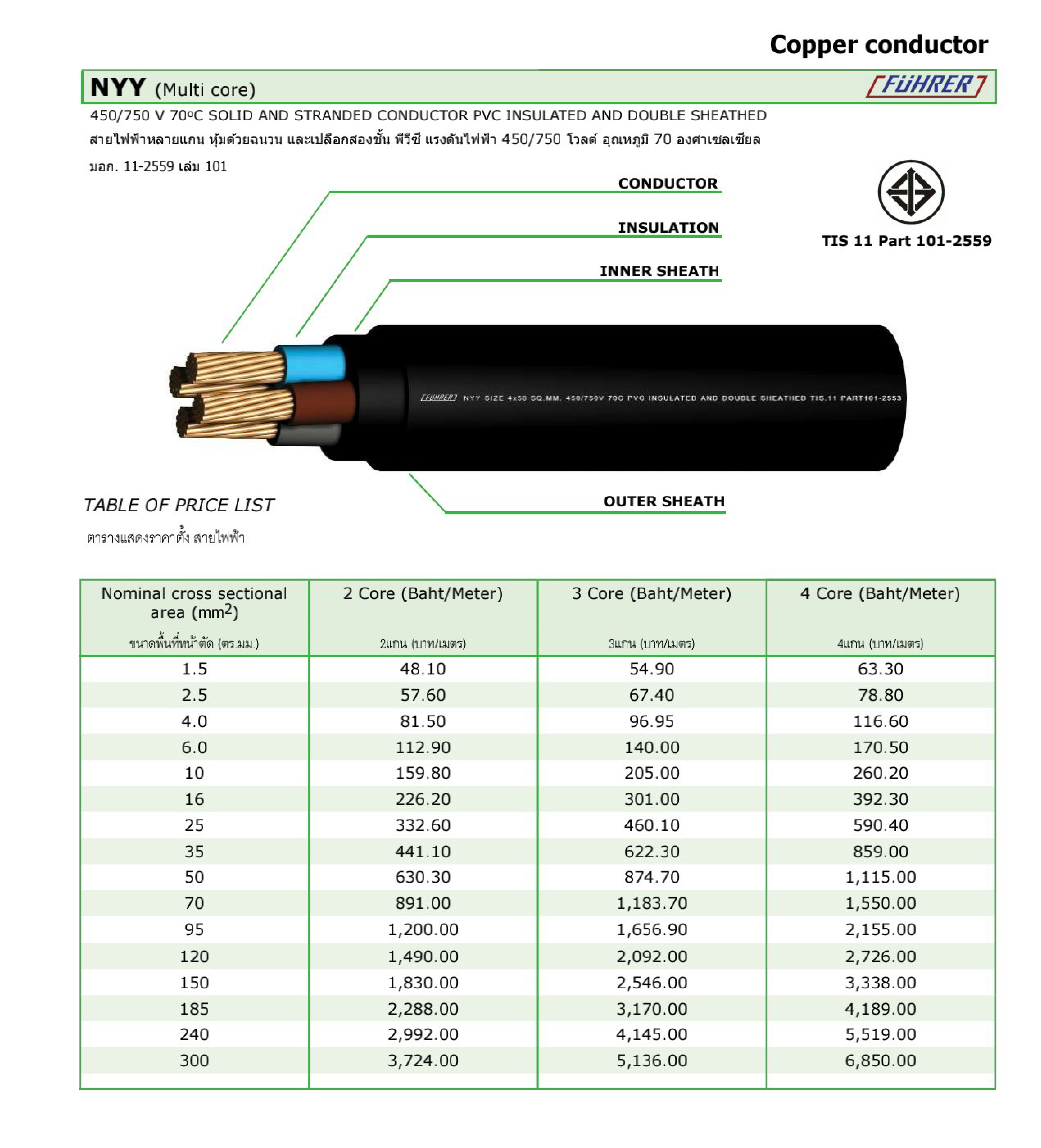 สายไฟฟ้า ชนิดตัวนำทองแดง | NYY MULTI CORE