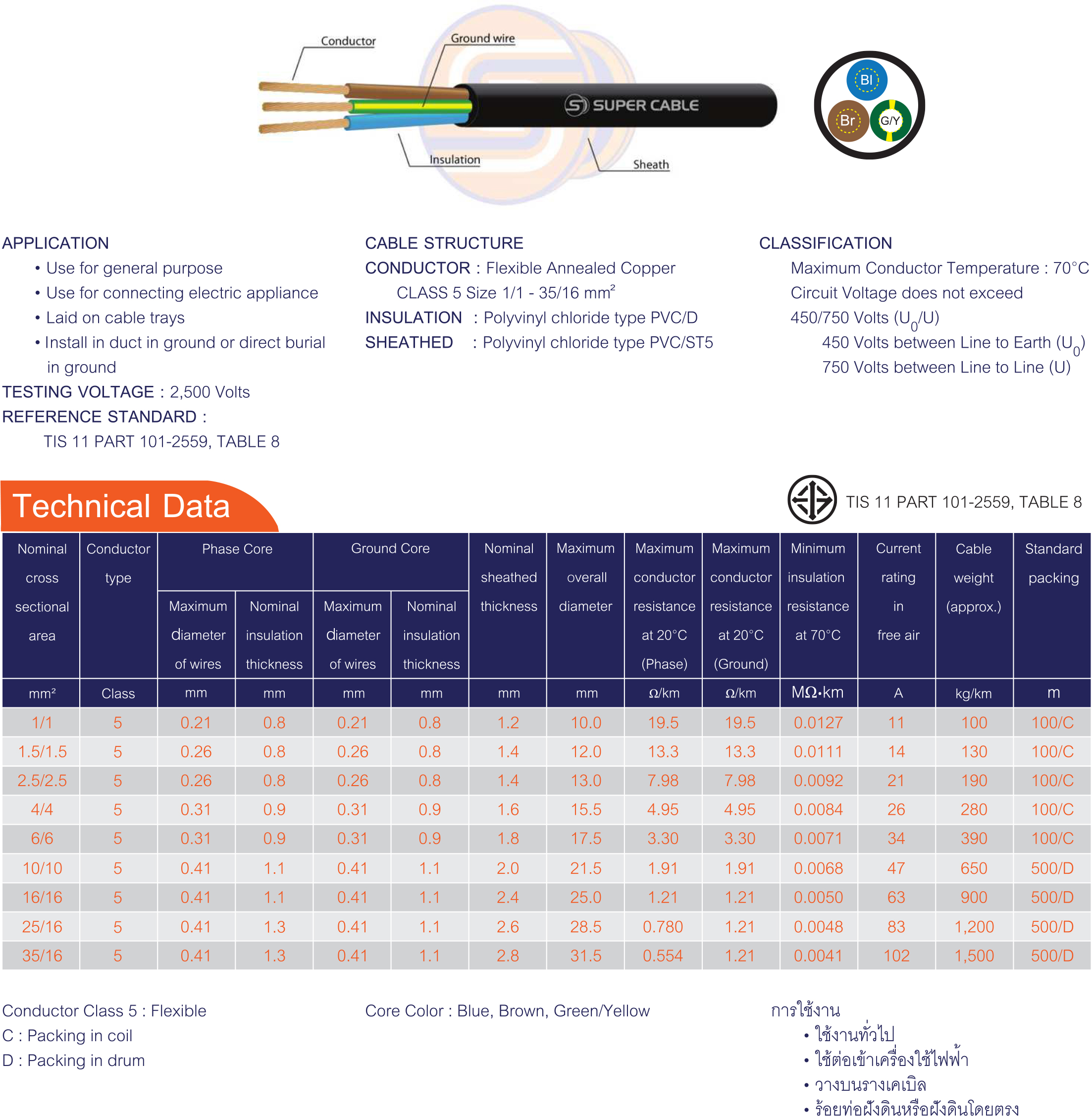 สายไฟชนิดตัวนำทองแดง/สายคอนโทรลและสายอ่อน | VCT-G 2 CORES