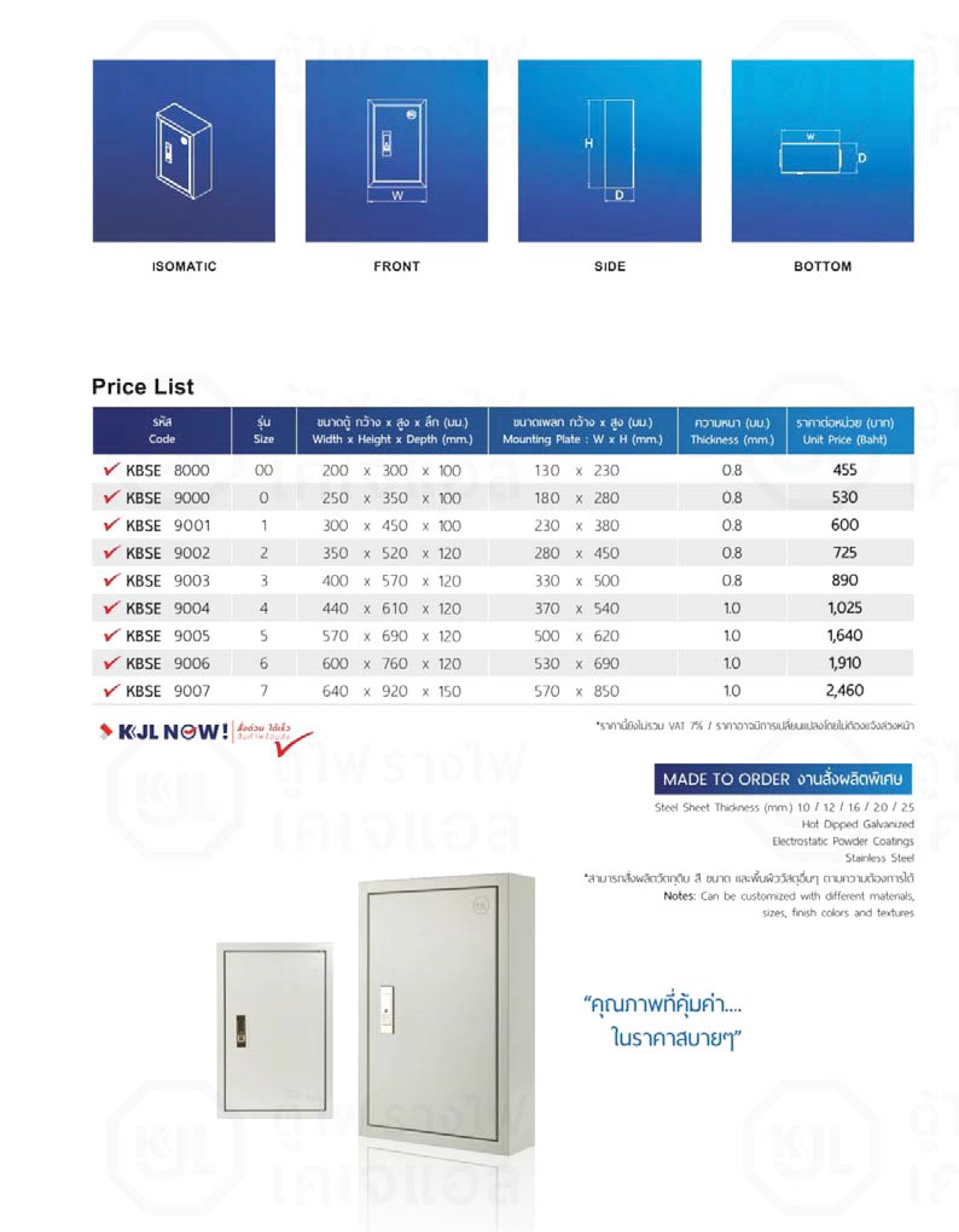 ตัวตู้ผลิตจาก เหล็กแผ่นขาวคุณภาพสูง ความหนา 0.8 - 1.0 mm. ตัวตู้ออกแบบและควบคุมการผลิตด้วยระบบ CNC (Computer Numerical Control) ลักษณะการเคลือบผิว พ่นด้วยสีฝุ่น Epoxy Powder Coatings สีควันบุหรี่ย่น (KJ89328Y) กุญแจกด C175 ใช้งานง่าย สะดวก และรับประกันการใช้งานเหมาะสำหรับงานติดตั้งภายในอาคารมาตรฐานการกันฝุ่นกันน้ำ IP 20 (มอก. 513-2553/ IEC 60529:2001) สามารถสั่งผลิตวัตถุดิบ สี ขนาด และพื้นผิววัสดุอื่นๆ ตามความต้องการได้