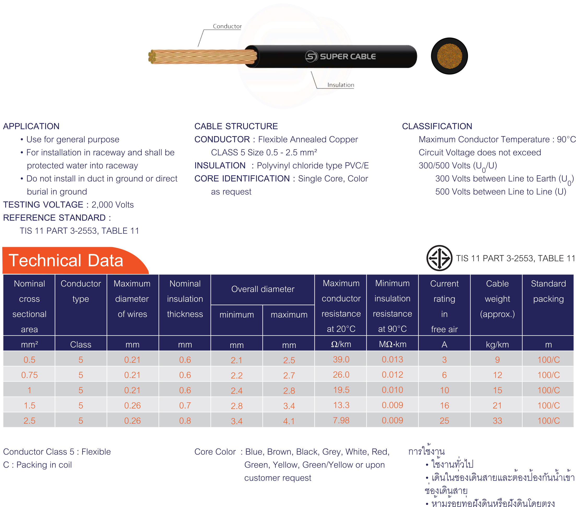 สายไฟชนิดตัวนำทองแดง/สายคอนโทรลและสายอ่อน | 60227 IEC 08 (HVSF)