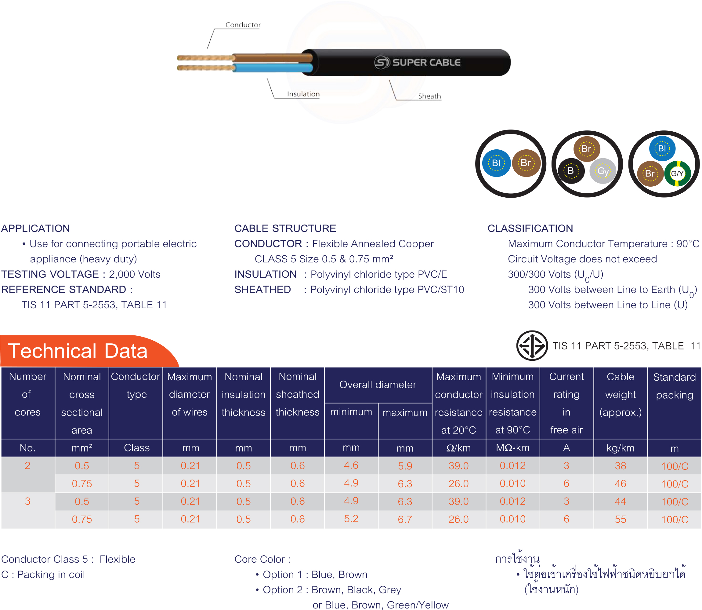 สายไฟชนิดตัวนำทองแดง/สายคอนโทรลและสายอ่อน | 60227 IEC 56