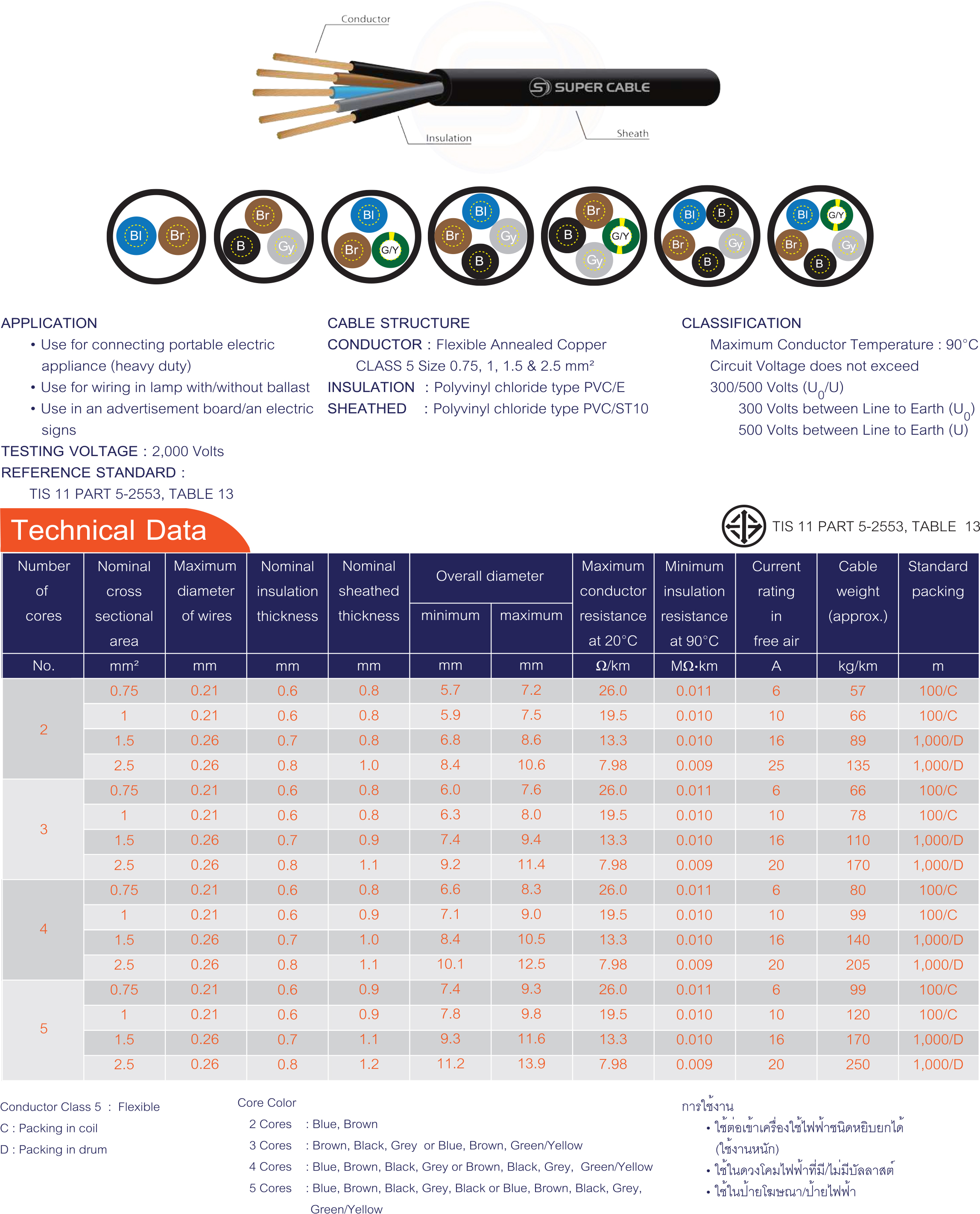 สายไฟชนิดตัวนำทองแดง/สายคอนโทรลและสายอ่อน | 60227 IEC 57