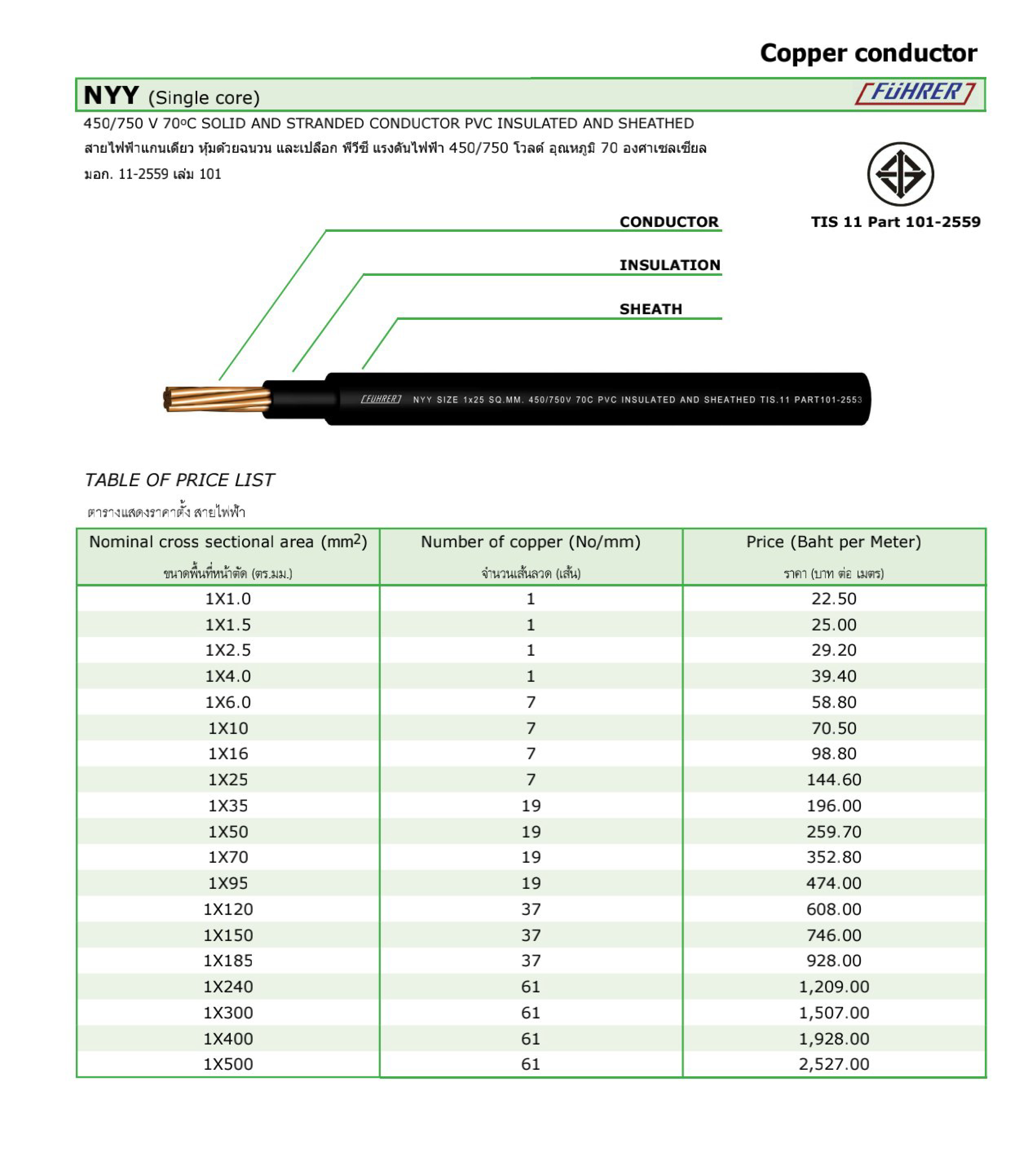 สายไฟฟ้า ชนิดตัวนำทองแดง | NYY SINGLE CORE