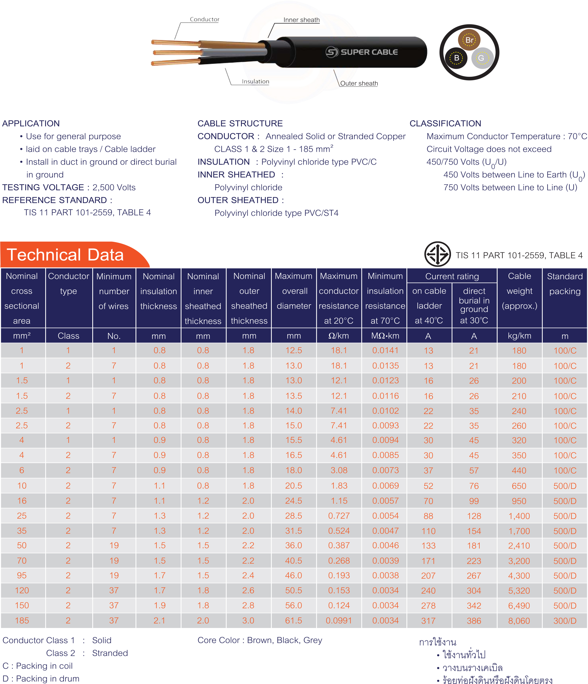 สายไฟชนิดตัวนำทองแดง/สายไฟแรงดันต่ำ | NYY 3 CORES