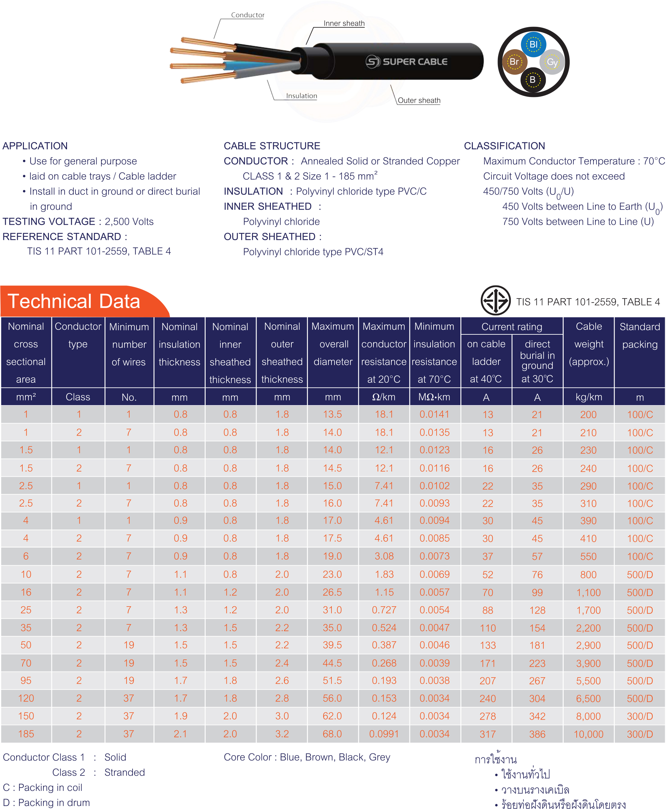 STRANDED CONDUCTOR PVC INSULATED AND DOUBLE SHEATHED, 4 CORES