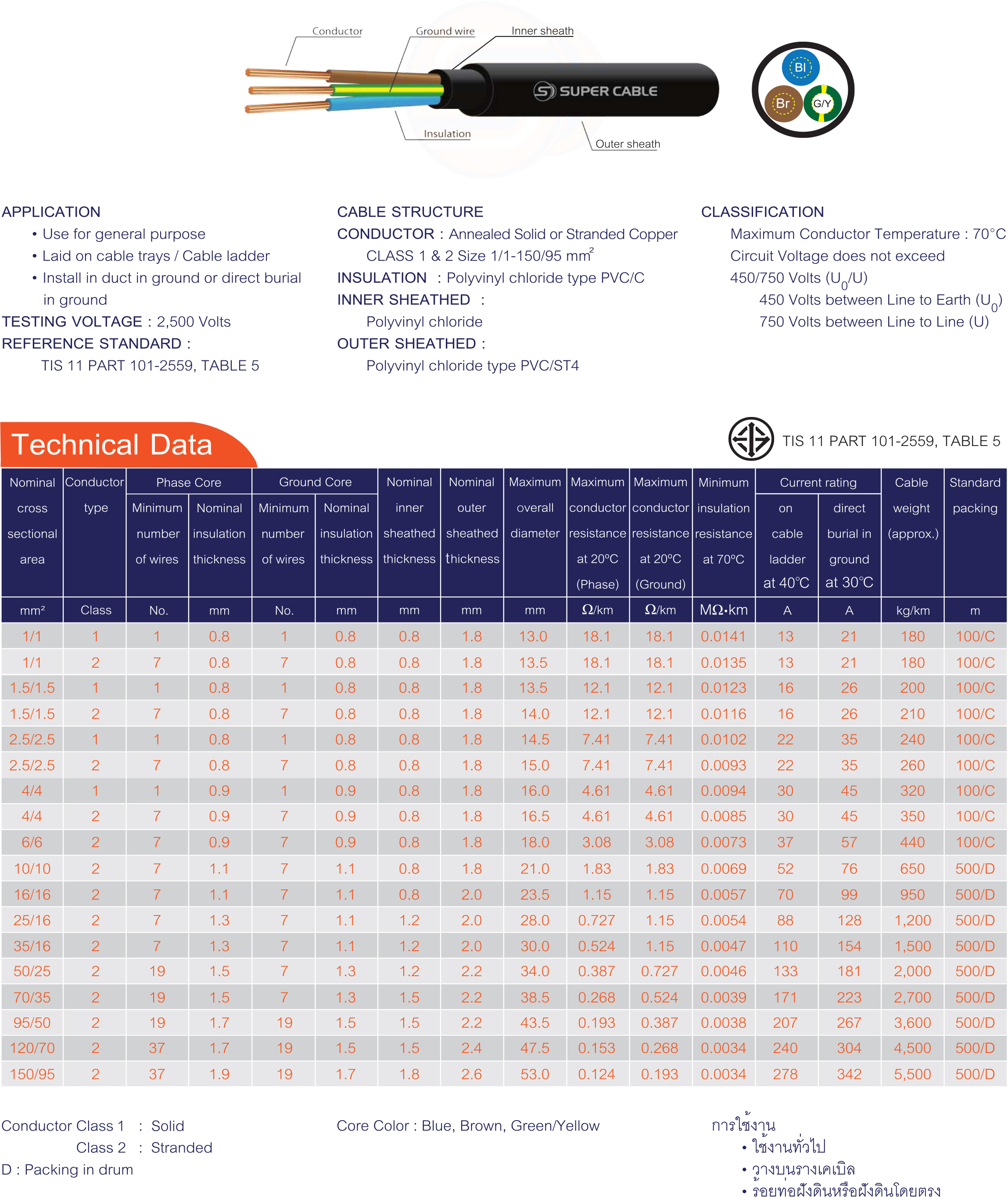 สายไฟชนิดตัวนำทองแดง/สายไฟแรงดันต่ำ | NYY-G 2 CORES