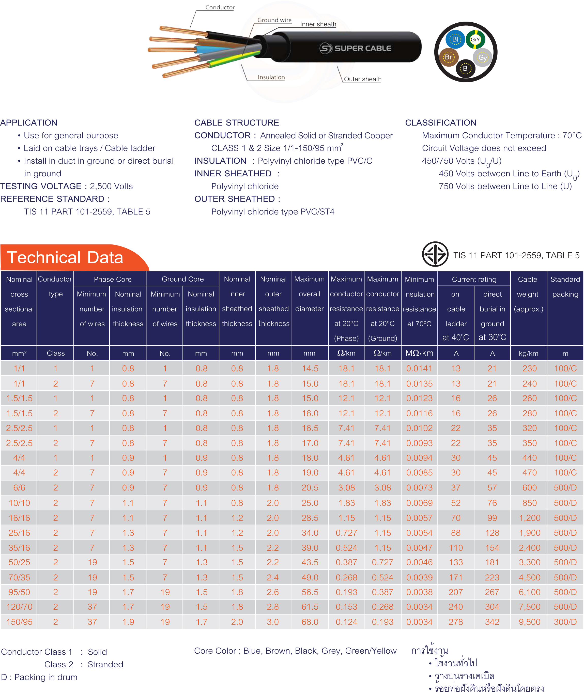 สายไฟชนิดตัวนำทองแดง/สายไฟแรงดันต่ำ | NYY-G 4 CORES